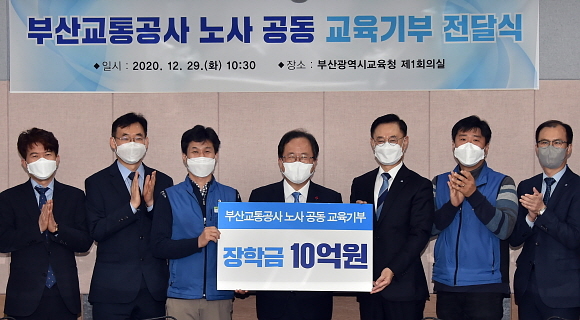 이날 기부금 전달식에서 이종국 부산교통공사 사장은 “코로나19 사태로 더 형편이 어려워진 취약계층 학생이 미래사회를 선도할 인재로 성장하는 데 조금이라도 도움이 됐으면 한다”고 전했다.