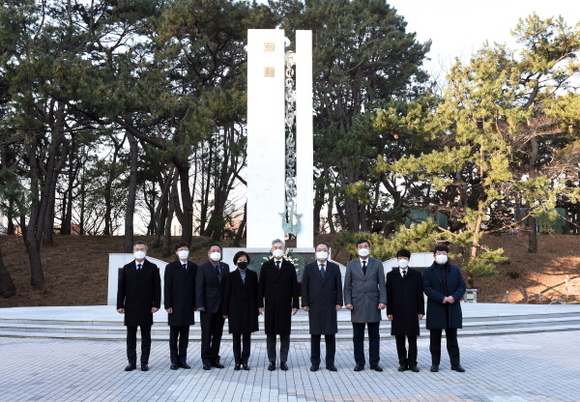 장영수 총장을 비롯한 부경대 교무위원들은 이날 2021년 첫 공식 일정으로 바다 개척과 학문 발전을 위해 목숨을 바친 선배 영령을 기리는 백경탑을 참배했다. 코로나19 확산 우려로 시무식 행사는 별도로 열리지 않았다.