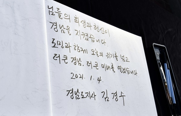 김경수 경남도지사가 4일 오전 국립3.15민주묘지와 창원충혼탑에 참배하는 것으로 2021년 새해 업무를 시작했다.