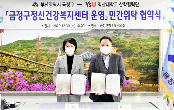 와이즈유(영산대학교) 산학협력단은 지난달 30일 부산 금정구청 구청장실에서 금정구 정신건강복지센터(부설 자살예방센터) 위탁 운영에 관한 업무협약식을 가졌다.