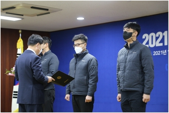 이날 시무식은 코로나19 사회적 거리두기 방침에 따라, 참석 인원을 10명 이내로 유지하고 철저한 발열 체크, 마스크 착용 및 생방송 중계를 통해 안전하게 진행됐다.