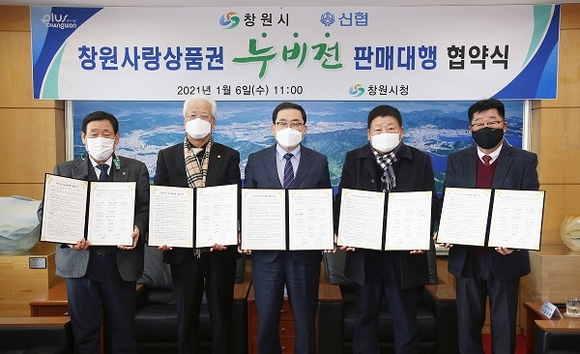 경남 창원시는 6일 오전 접견실에서 누비전(창원사랑상품권)의 원활한 유통을 위해 12개 관내 지역신협과 누비전 판매대행 업무협약을 체결했다.