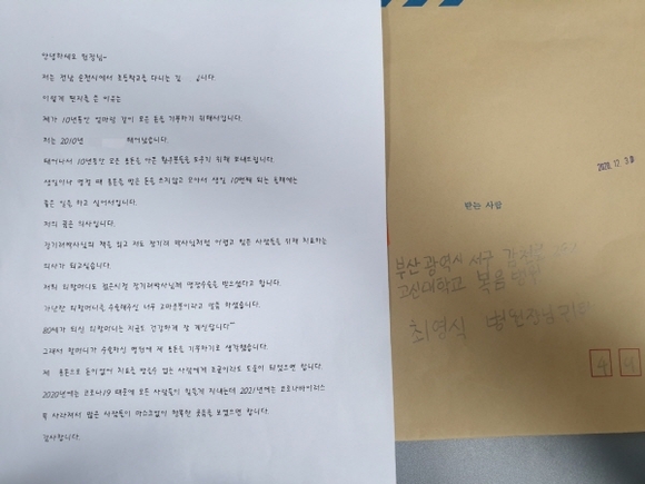 김지은 학생의 편지. (사진=고신대병원 제공)