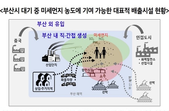 보고서에 따르면 항만 하역장비, 화물차량, 선박에서 배출되는 가스상 오염물질의 2차 생성물질이 부산지역의 미세먼지에 큰 영향을 주는 것으로 나타났다. 부산 전체 미세먼지 가운데 2차 생성 미세먼지의 비중이 50%를 넘은 것으로 조사됐다.