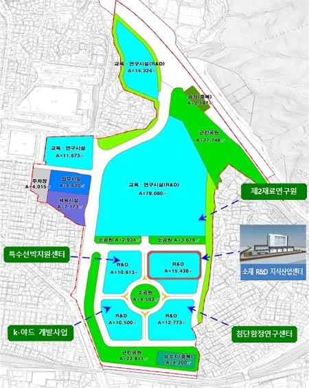 설계 기본방향은 제2재료연구원을 중심으로 한 소재부품 관련 분야 밀착 지원과 네트워크 구축, 비즈니스 환경 조성을 위한 특화형 지식산업센터를 건립하는 것이다.