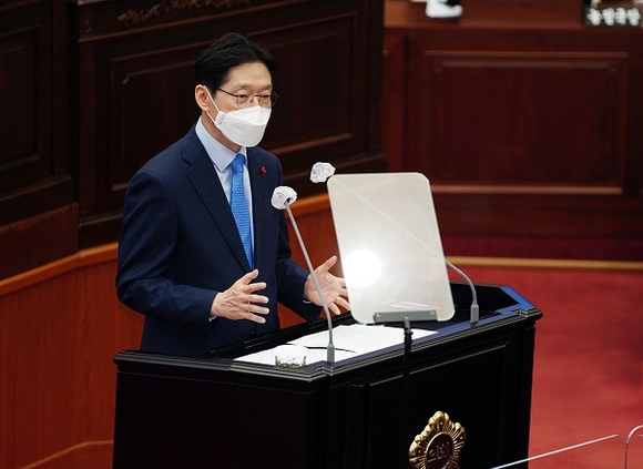 지난 6일 신년 기자회견을 통해 2021년 도정 운영방향을 밝힌 김 지사는 올 들어 처음으로 열린 도의회에서 도의원들을 대상으로 '동남권 메가시티 기반 구축', '뉴딜 선도 스마트인재 집중양성', '기후위기 선제 대응' 등 3대 중점과제를 다시 한 번 설명하며 협조를 당부했다.