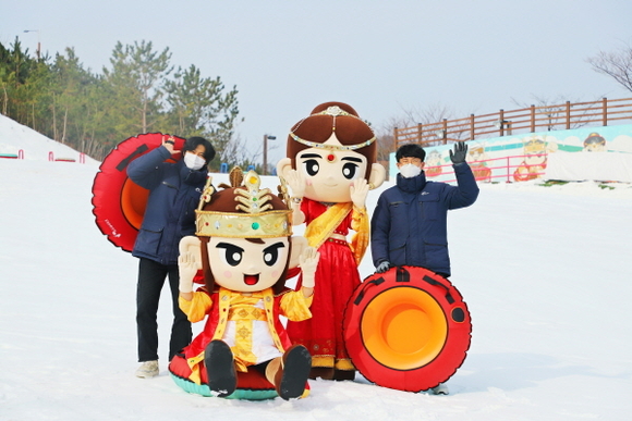 눈썰매장은 사회적거리두기 지침에 따라 동시 입장 인원을 수용인원의 3분 1 미만으로 줄여 운영하며 거리두기 출발, 시설물 방역소독을 지속적으로 실시하고 있다.