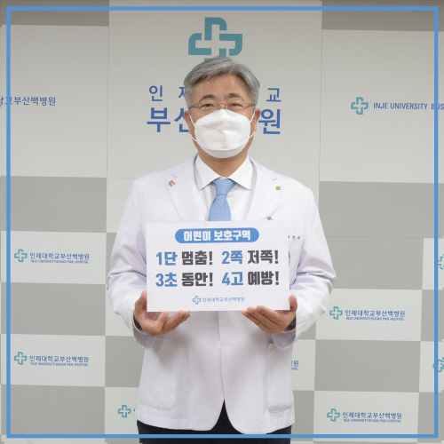인제대학교 부산백병원 이연재 원장이 지난 13일 ‘어린이 교통안전 릴레이 챌린지’ 캠페인에 동참했다.