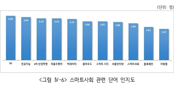 부산연구원은 지난해 6월 17~28일 부산시민 1000명을 대상으로 스마트기술 인지 정도를 묻는 설문조사를 진행했다. 그 결과 5G 기술이 5점 만점에 3.49점으로 가장 높게 나타났다.