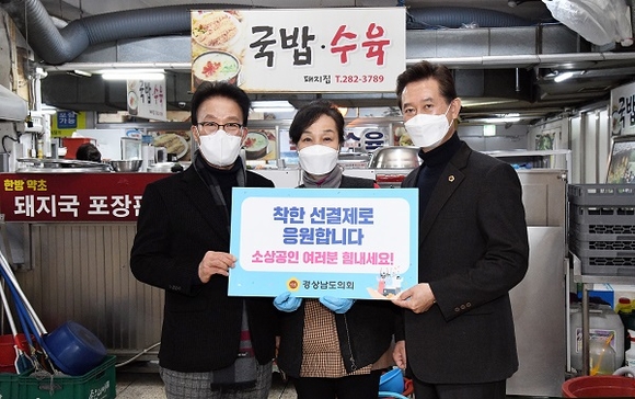 경남도의회 김하용 의장과 장규석 제1부의장은 18일 창원시 내 작은 음식점을 찾아 '착한 선결제 운동'에 동참하며 소상공인을 위로했다.