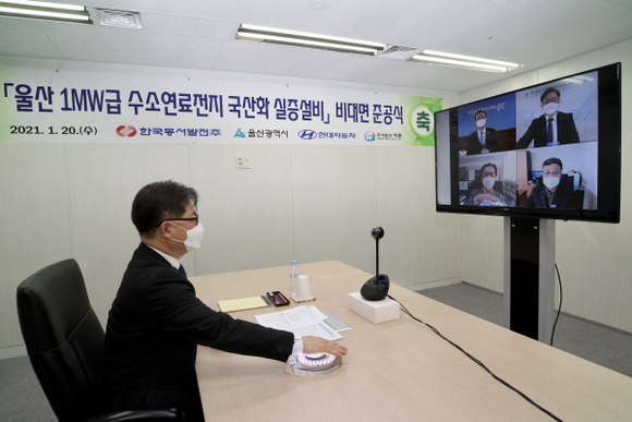 한국동서발전은 20일 현대자동차, 덕양과 함께 ‘1㎿급 발전용 고분자전해질 수소연료전지 시스템’ 준공식을 비대면으로 개최했다.