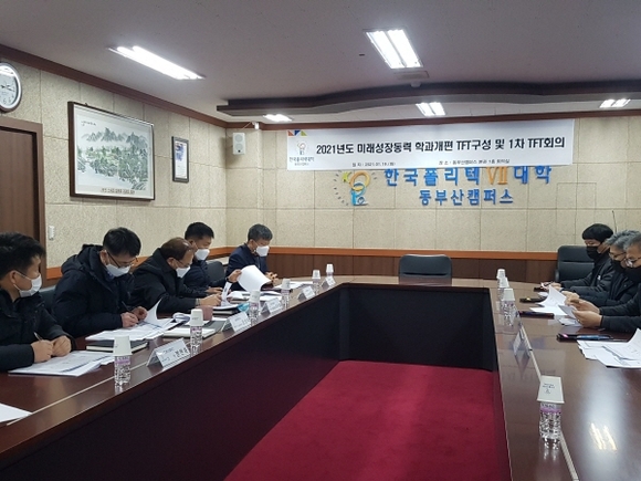 한국폴리텍대학 동부산캠퍼스는 지난 19일 캠퍼스 본관 1층 회의실에서 스마트전기과 학과개편 1차 TFT회의를 개최했다.