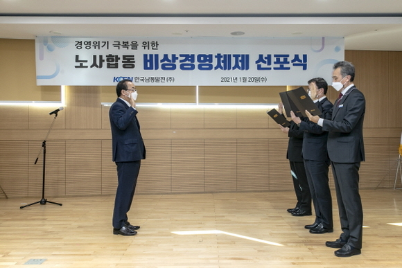 이날 남동발전은 코로나19 발병·확산으로 인한 전 세계적인 경제위기 여파의 전력산업 동반위축, 에너지가격 불안 등 경영위기가 도래하고 있다고 판단, 노사 합동의 ‘비상경영체제’를 선포했다. 이어 기획관리본부장을 단장으로 하는 ‘비상경영추진단’ 발대식도 진행했다.