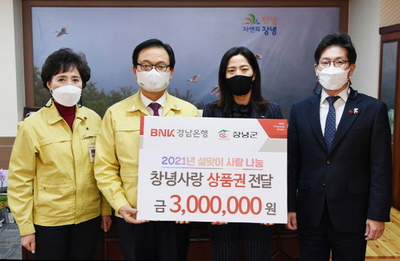 BNK경남은행이 지난 20일 민족 최대 명절 설을 앞두고 창녕군에 ‘창녕사랑상품권’을 기탁했다고 21일 밝혔다.