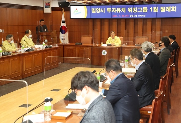 경남 밀양시는 지난 20일 시청 소회의실에서 박일호 시장 주재로 밀양시, 한국토지주택공사(LH) 경남지역본부, 한국산업단지공단 경남지역본부, 경남테크노파크(경남TP)가 참석한 '밀양시 투자유치 워킹그룹 전략회의'를 가졌다.