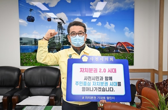 이삼수 사천시의회 의장이 21일 '자치분권 기대해 챌린지'에 동참했다.