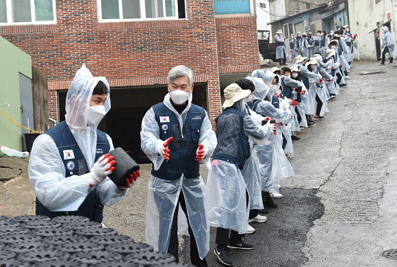 장영수 부경대 총장과 교직원, 부경대 사회공헌봉사단 학생 40여명은 이날 오전 대학 인근 문현동 일대를 찾아 20여가구에 총 2500장의 연탄을 직접 배달했다.