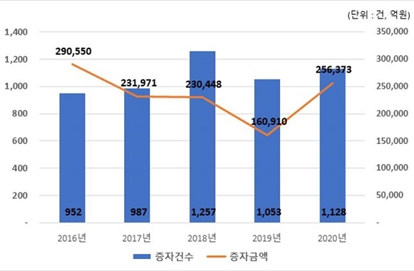 한국예탁결제원은 ‘2020년도 연간 유상증자 현황’ 조사 결과를 25일 발표하고 위와 같이 나타났다고 밝혔다.