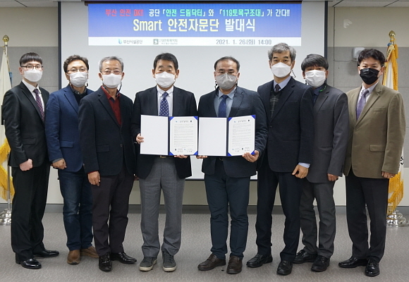 부산시설공단이 지난 26일 오후 공단 본사 5층 대회의실에서 ㈔대한토목학회 부산울산경남지회와 함께 ‘스마트 안전자문단’ 출범식을 열었다고 27일 밝혔다.