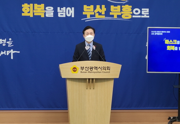 김영춘 부산시장 예비후보(더불어민주당)가 27일 오전 11시 부산시의회 브리핑실에서 기자회견을 열고 그의 두 번째 공약으로 소상공인 지원 대책과 코로나19 대책에 대해 발표했다.