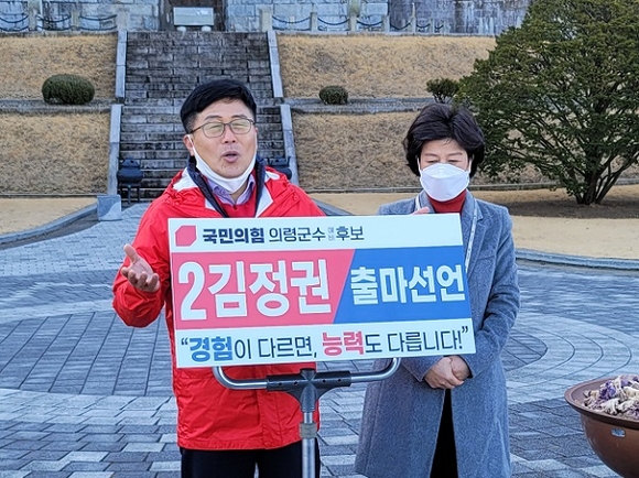 국민의힘 김정권 전 의원이 오는 4·7 의령군수 재보선에 출사표를 던졌다.