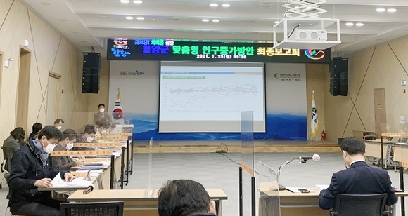 경남 함양군은 지난 25일 군청 대회의실에서 본청 담당관·과·소장 30명이 참석한 가운데 '함양군 맞춤형 인구증가 방안 연구용역' 최종보고회를 가졌다.