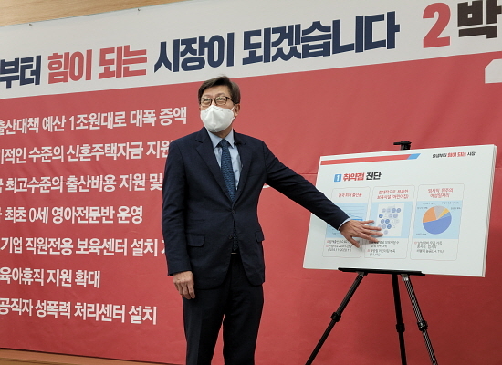 박형준 예비후보는 기자회견에서 부산지역의 출산율이 전국 최저 수준으로 특히 지난 2019년 11월부터 지난해 11월까지 1년 사이에 신생아 수가 무려 20.8%나 급감한 점을 꼬집었다.