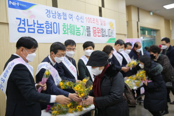 윤 본부장은 “경남농협의 여수신 100조원 달성은 농업인과 도민의 신뢰로 이뤄낸 쾌거”라며 “앞으로도 농협은 경남도민과 화훼 농가의 앞날을 위해 최선을 다하겠다”고 밝혔다.