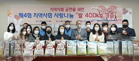한국해양대학교 LINC+사업단은 지난달 개최된 ‘한국해양대 오션드림페어(KMOU Ocean Dream Fair) 2021’에서 축하화환 대신 받은 쌀 400kg을 부산 영도구 해돋이공부방에 기증했다고 밝혔다.