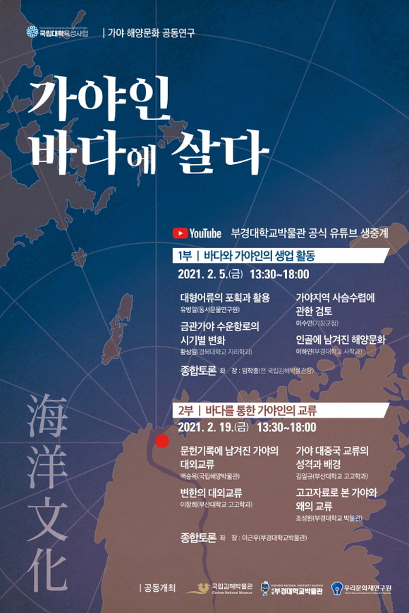 국립부경대학교박물관이 국립김해박물관, (재)우리문화재연구원과 함께 오는 5일과 19일 ‘가야인, 바다에 살다’ 공동학술대회를 개최한다.