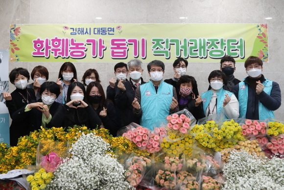 이번 행사는 생화의 70%를 생산하는 국내 최대 화훼단지인 김해시 대동면 소재 ‘대동화훼마을’과 공동으로 주최, 장미꽃 1100송이를 비롯해 안개꽃, 프리지아를 대량으로 구매했다.