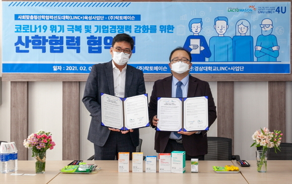 국립 경상대학교(GNU) 링크플러스(LINC+)사업단은 지난 3일 ㈜락토메이슨 접견실에서 ㈜락토메이슨(대표이사 손민)과 산학협력을 위한 업무협약을 체결했다.