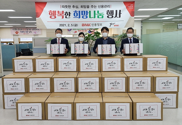 BNK신용정보가 5일 오전 설 명절을 앞두고 이웃사랑 실천을 위해 ‘행복한 희망 나눔 행사’를 전개했다고 밝혔다.