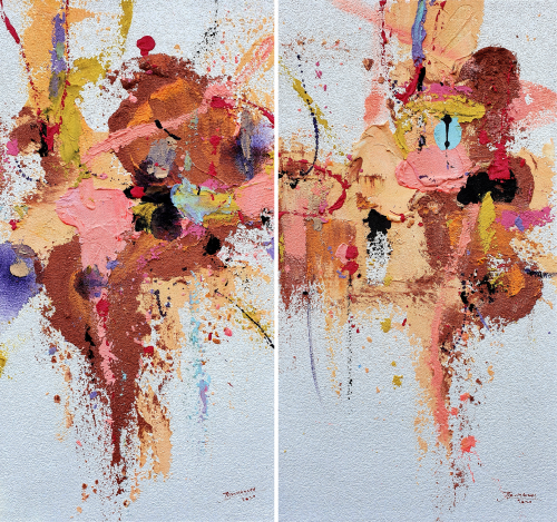 노재환 작가는 물감과 물의 성질을 이용하여 마블링 기법과 드로잉 기법의 혼용으로 제작된 작품들로 자연적이고 우연적인 새로운 형태로 나타나는 움직임의 역동성을 표현한 작품을 선보인다. 조해경 작가는 열악한 환경을 이겨내고 피어나는 식물인 꽃에 매료되어 강한 생명력을 가진 선인장과 동백, 매화를 모티브로 한 작품을 유화로 표현하는 것이 특징이다.
