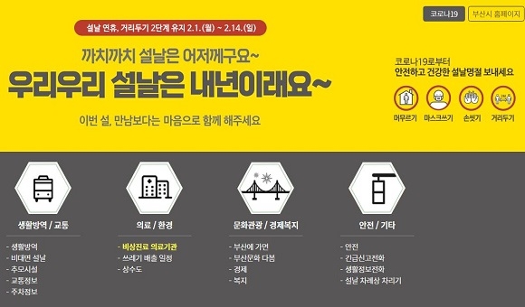 부산시가 설 연휴를 앞두고 특별 방역대책을 비롯한 경제, 안전, 교통, 복지 등의 분야별 명절 대책을 8일 발표했다.