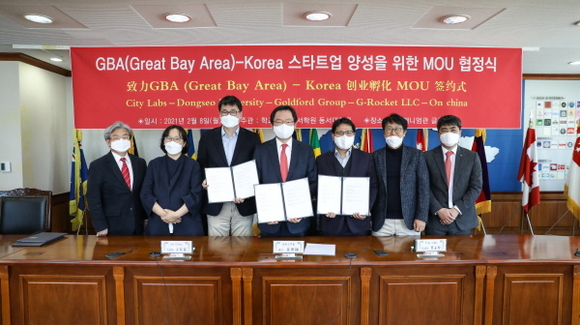 동서대학교는 8일 오후 2시 뉴밀레니엄관 11층 글로벌룸에서 홍콩의 Goldford Group, G-Rocket 액설러레이터, 한국의 시티랩스, 온차이나 등 4개사와 혁신 스타트업 투자 및 인재 양성을 위한 GBA-Korea 컨소시엄 구성 및 양해각서(MOU)를 체결했다고 밝혔다.