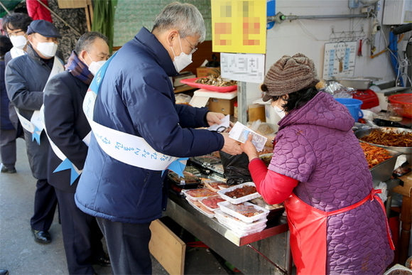 전통시장 장보기 행사 현장에 물품을 구매하는 모습. (사진=KTL 제공)