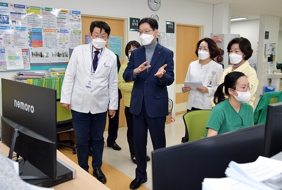 설 연휴에도 쉬지 못하고 확진자 치료와 코로나19 대응에 최선을 다하고 있는 의료진과 직원들의 수고에 감사를 전하고 애로사항을 들으며 방역현장을 살폈다.