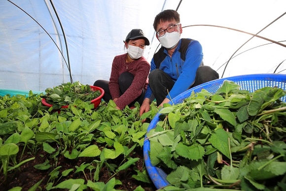 8일 산청군 차황면 상법마을의 한 농가에서 취나물 수확이 한창이다. 지난 2007년 광역친환경농업단지로 지정된 차황면 황매산 일대에서 생산되는 취나물은 맑고 깨끗한 물과 풍부한 햇빛을 맞고 자라 맛과 향이 뛰어나다. 취나물은 비타민C와 아미노산이 풍부해 성인병과 숙취해소에 도움이 된다. (사진=산청군 제공)