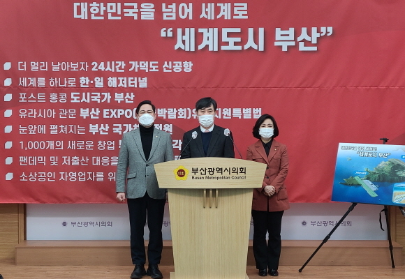 국민의힘 부산시당이 9일 오후 2시 부산시의회 브리핑실에서 기자회견을 열고 시당 차원의 ‘1차 부산시장 보궐선거 공통공약’에 대해 발표했다.