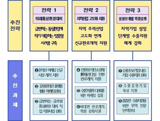 부산 수출의 회복을 위한 이번 계획은 3대 전략, 9대 과제, 56개 사업을 추진해 부산 소재 총 6370개 기업을 지원하는 것이다.