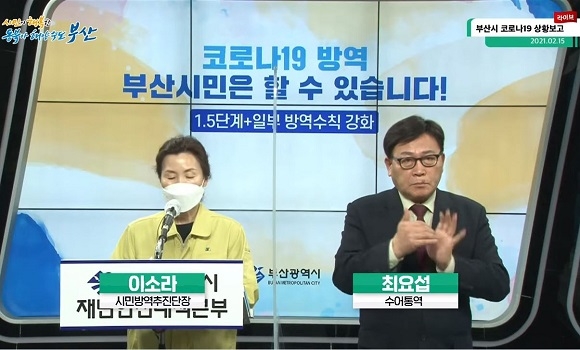 이소라 시민방역추진단장은 “연휴에도 요양원을 비롯한 집단시설에서 확진자가 계속 발생했으며 타지역 확진자 접촉 사례와 가족 간 감염 사례가 나오고 있다. 4일간 설 연휴가 끝나고 오늘부터 부산시의 사회적 거리두기 지침이 1.5단계로 내려갔지만 방역의 긴장을 늦출 순 없는 상황”이라며 “시민 각자가 스스로 실천하는 방역의 중요성이 더욱 커진 시점이다. 마스크 착용, 손 씻기 등 개인위생을 계속 실천해 주시고 5인 이상 사적 모임 금지, 목욕장 내 사우나·찜질 금지 등 방역수칙을 준수해주시길 바란다”고 당부를 전했다.