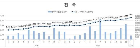 주택도시보증공사(HUG)는 전국 민간아파트의 분양보증사업장 정보를 집계, 분석한 ‘2021년도 1월 말 기준 민간아파트 분양가격 동향’ 조사 결과를 15일 발표했다.