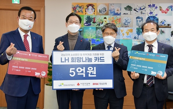 김 지사는 “어려운 분들을 도우면서 소상공인도 도울 수 있는 점이 무척 의미있다고 생각한다”며 “지역을 대표하는 공기업인 LH가 나서서 이렇게 큰 도움 주셔서 감사하다”고 고마운 마음을 전했다.