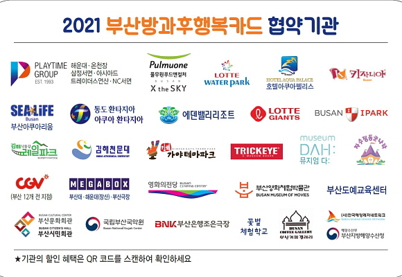 이번에 제휴를 맺게 된 각 업체는 ▲CGV 해운대점 ▲풀무원푸드앤컬처 부산엑스더스카이 ▲플레이타임그룹 해운대점 ▲플레이타임그룹 온천장점 ▲플레이타임그룹 삼정타워점 ▲플레이타임그룹 아시아드점 ▲플레이타임그룹 서면 NC점 ▲플레이타임그룹 연산 트레이더스점 8곳이다.