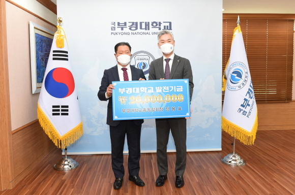 정 대표이사는 지난 16일 부경대 대학본부 3층 총장실에서 열린 부경대 총동창회장 이‧취임식 및 발전기금 전달식에서 장영수 총장에게 2000만원을 전달했다.