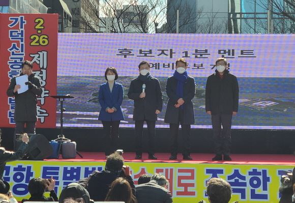 또 행사에는 4월 부산시장 보궐선거에 나서는 예비후보 가운데 김영춘, 변성완, 박인영(이하 더불어민주당), 박형준(국민의힘) 4명이 참석해 ‘가덕신공항 특별법 2월 국회 제정 지지 서명’을 했다.
