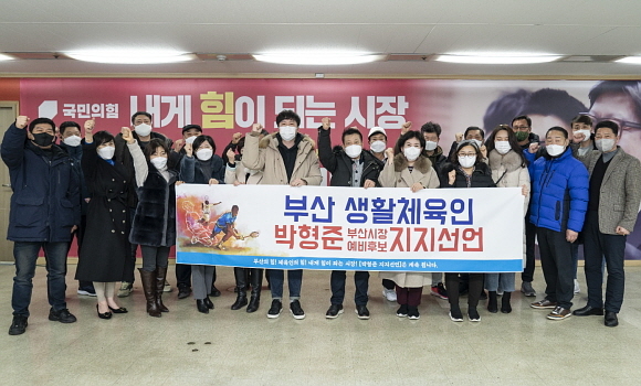 박형준 부산시장 예비후보(국민의힘) 캠프는 부산 생활체육인 333인이 지난 16일 늦은 오후 캠프 앞에서 박형준 예비후보 지지를 선언했다고 17일 밝혔다.