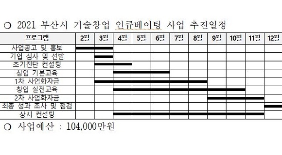 이병진 시장 권한대행은 “기술창업 인큐베이팅 사업은 시가 10년 넘게 추진해 온 창업 생태계의 초석을 다지는 사업”이라며 “부산이 키워낸 창업기업이 글로벌 기업으로 성장할 수 있도록 아낌없는 지원을 하겠다”고 전했다.