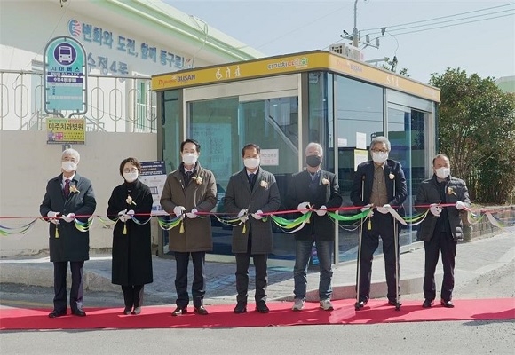 또 배리어 프리 스테이션은 교통 약자를 배려한 안내와 편의시설을 갖춘 정류장이자 승차 공유 차량을 이용할 수 있는 거점이다. 현재 부산 동구 수정동 52번 버스 종점 정류소와 부산역 광장 앞에 편의형 스테이션이 구축돼 동승 택시 도착정보, 버스 도착정보를 제공하며 비상호출, CCTV 등의 안전 기능도 갖췄다.